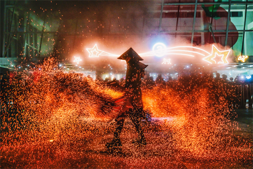 SM重庆采用精湛的技艺制作鱼灯,由文化传承人穿着汉服、手执鱼灯定时巡游,送去年年有“鱼”、富足有“鱼”的祈福之光;邀约火壶技艺传承人,在璀璨的夜空下,以火为墨,飒飒英姿、威风八面地绘制出一幅幅动人心魄的光影图腾,祈愿火除邪祟,百家安宁。