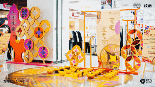 此次印力发发季则从当下消费者最关心的「发财」「好运」「如意」入手,选取了代表「藏宝/宝藏」发财寓意的主宝藏纹「钱纹」和辅助宝藏纹「葫芦纹」纹样,寓意向消费者传递天圆地方、福禄叠加、好运翻倍的美好祝福。