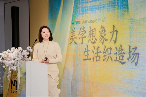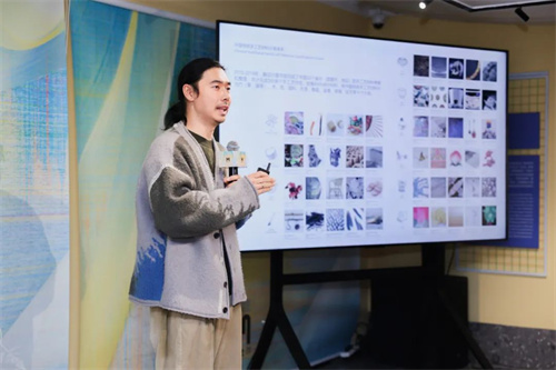 活动现场融设计图书馆创始人张雷分享:“乌泥泾手工棉纺织技艺的五个工序「捍、弹、纺、织、染」在项目中皆转译为空间韵律。”