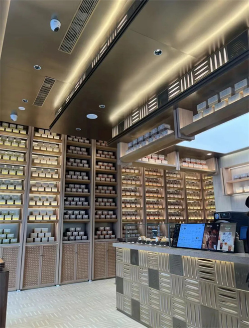 在门店布局上,“第二杯茶” 首店面积不到 50 平米,装修上为轻奢风格,小巧而精致。此外,店内还设有产品陈列展示区,以“盒装茶叶”为主;还有设有堂食区,配备3张小桌,供顾客短暂休息或商务洽谈。