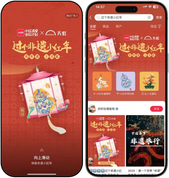 作为商业观察者,中购联对这些案例进行了全面复盘,我们特别关注到,天虹创新联动小红书官方IP小红点打造的「过个非遗小红年」主题年货节,不仅在线上实现了曝光超2亿、话题总浏览量近2000w的成绩,更是在全国各大天虹商场接住了“泼天流量”,成功撬动线下年轻群体的消费热情,以新潮玩法重构了大众对非遗的想象。