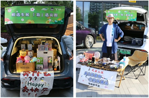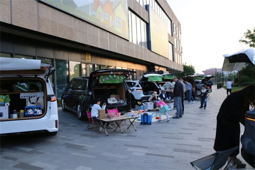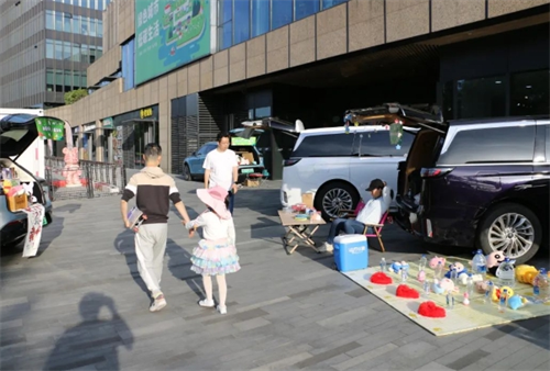 在后备箱公益市集区域,孩子们变身“小掌柜”,热情地招呼着来往市民。绘本、玩偶、手工艺品整齐摆放,一张张童稚的笑脸成为市集最温暖的风景线。